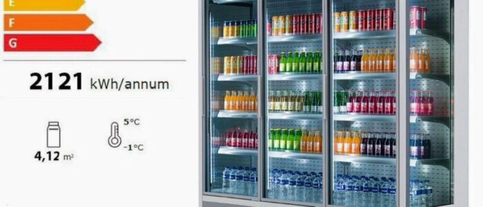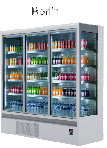 - 3-türiges Kühlregal mit Glastüren (Schieb- oder Drehtüren je nach Ausführung)